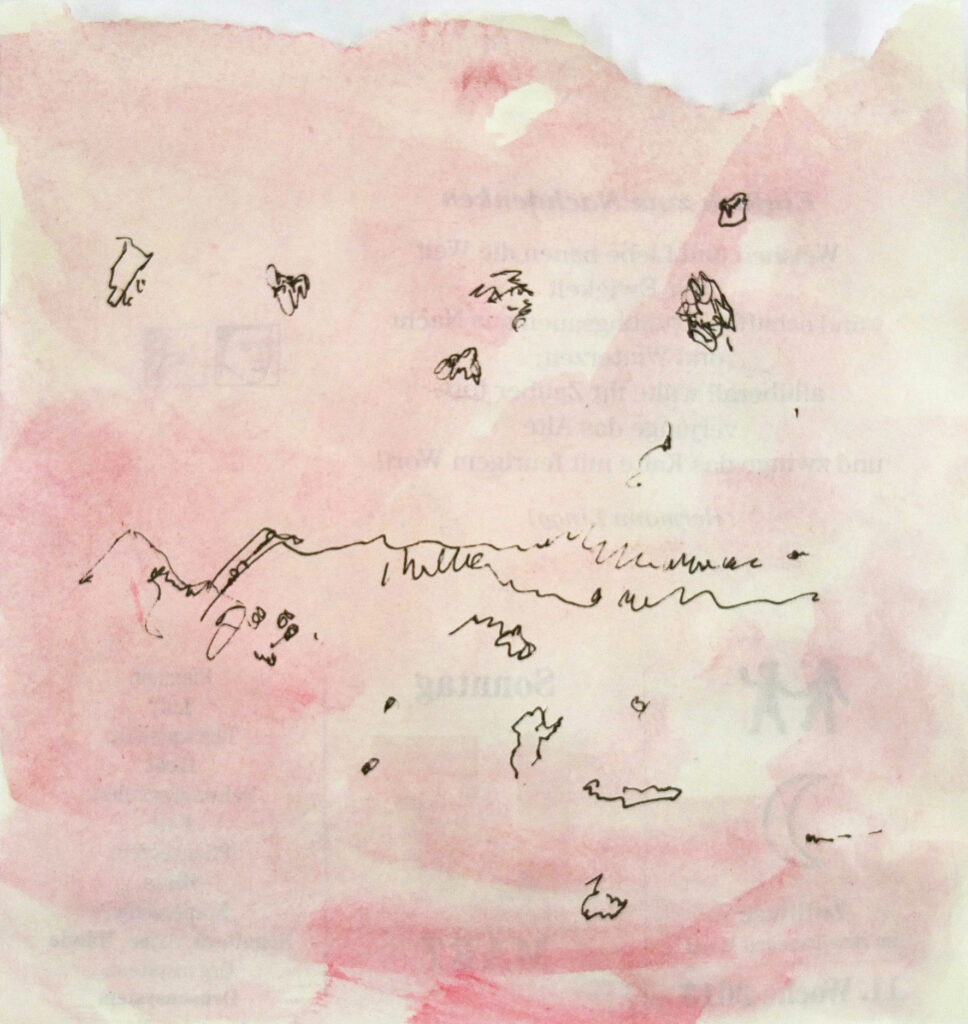 Titel: da und dort 1 Jahr: 2022 Kategorien: Arbeiten auf Papier Technik: Gouache und Tinte auf Papier Größe: 12 x 11 cm Untertitel: da und dort 2