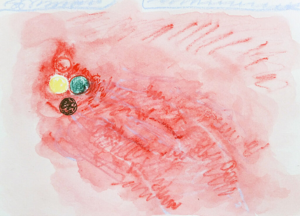 Titel: Ohne Titel Jahr: 2008 Kategorien: Arbeiten auf Papier Technik: Mischtechnik auf Papier Größe: 15 x 21 cm Untertitel: Birgit_Gessner_Eier_I