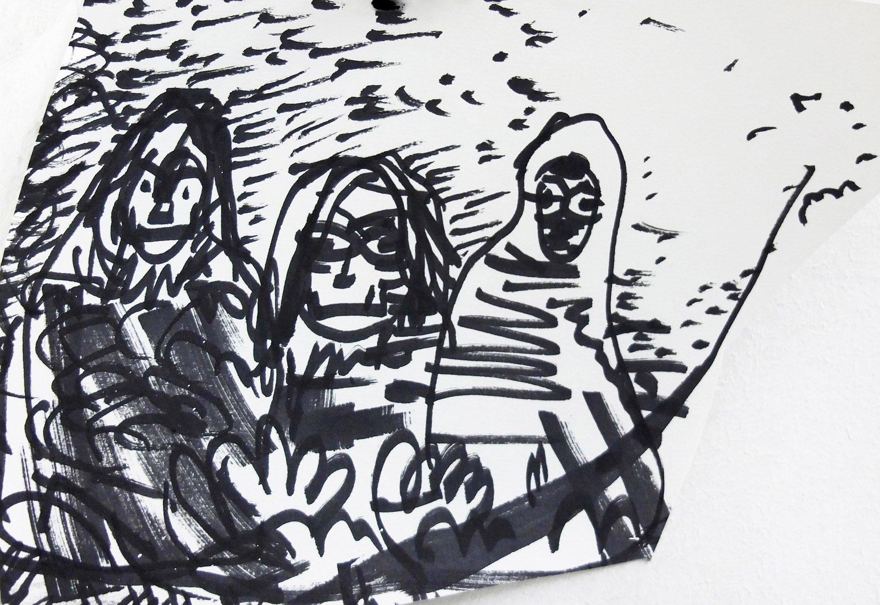 Titel: Freaks Jahr: 2010 Kategorien: Arbeiten auf Papier Technik: Marker auf Papier Größe: 14 x 18 cm