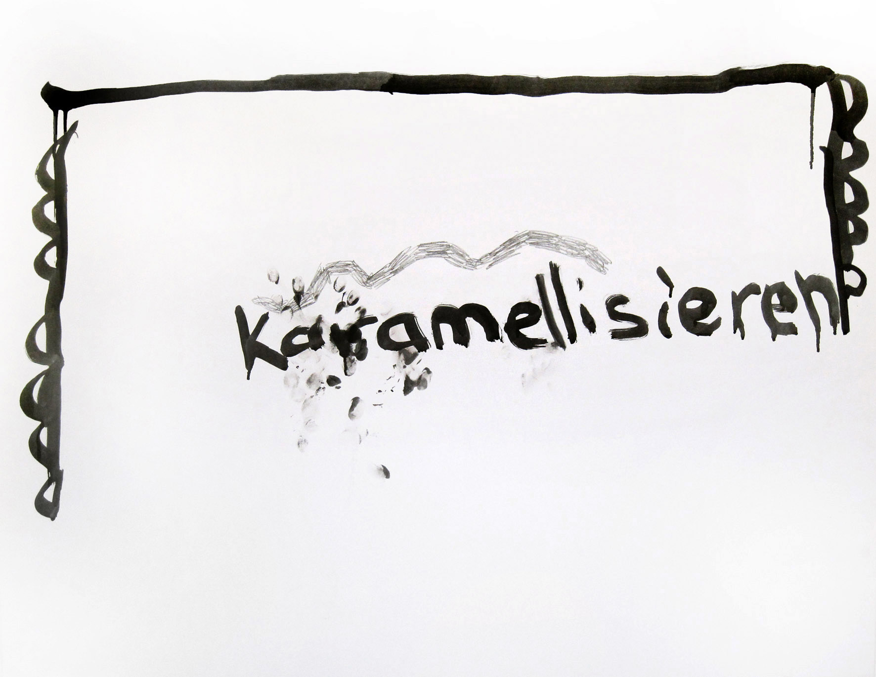 Titel: Karamellisieren 1 Jahr: 2010 Kategorien: Arbeiten auf Papier Technik: Tusche auf Papier Größe: 70 x 130 cm
