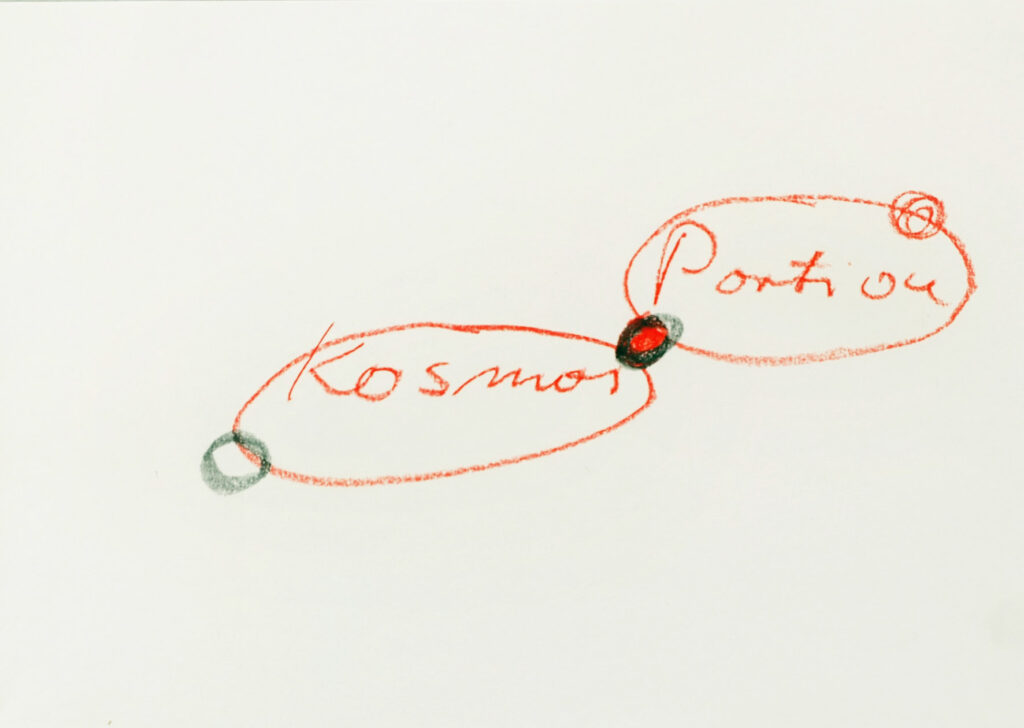 Titel: Kosmos, Portion Jahr: 2007 Kategorien: Arbeiten auf Papier Technik: Kreide auf Papier Größe: 30 x 42 cm