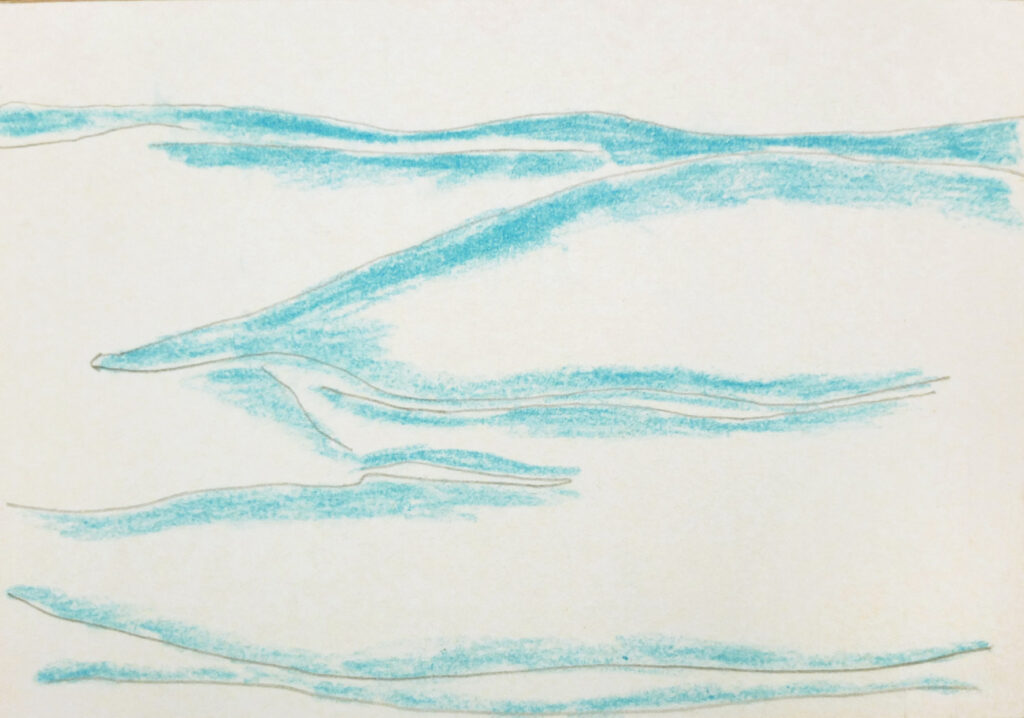 Titel: Ohne Titel Serie: Krk Jahr: 2000 Kategorien: Arbeiten auf Papier Technik: Kreide und Bleistift auf Papier Größe: 11 x 16 cm