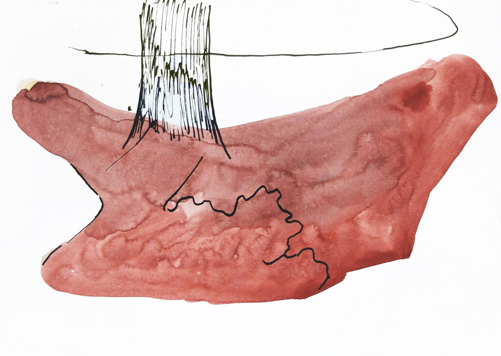 Titel: Ohne Titel Serie: Krk Jahr: 2000 Kategorien: Arbeiten auf Papier Technik: Tusche und Gouache auf Papier Größe: 13 x 18 cm
