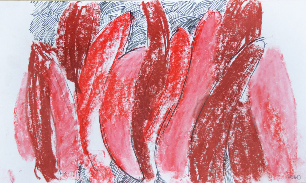 Titel: Ohne Titel Jahr: 2000 Kategorien: Arbeiten auf Papier Technik: Kreide und Marker auf Papier Größe: 12 x 19 cm