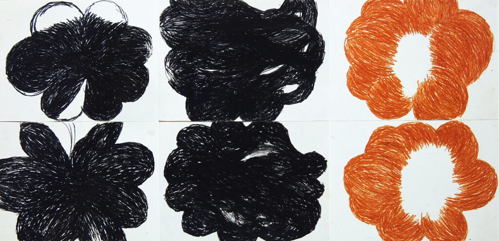 Titel: Ohne Titel Serie: Blumen Jahr: 1995 Kategorien: Arbeiten auf Papier Technik: Marker auf Papier