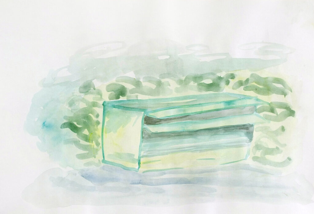 Titel: Riegel Jahr: 2015 Kategorien: Arbeiten auf Papier Technik: Gouache auf Papier Größe: 30 x 42 cm