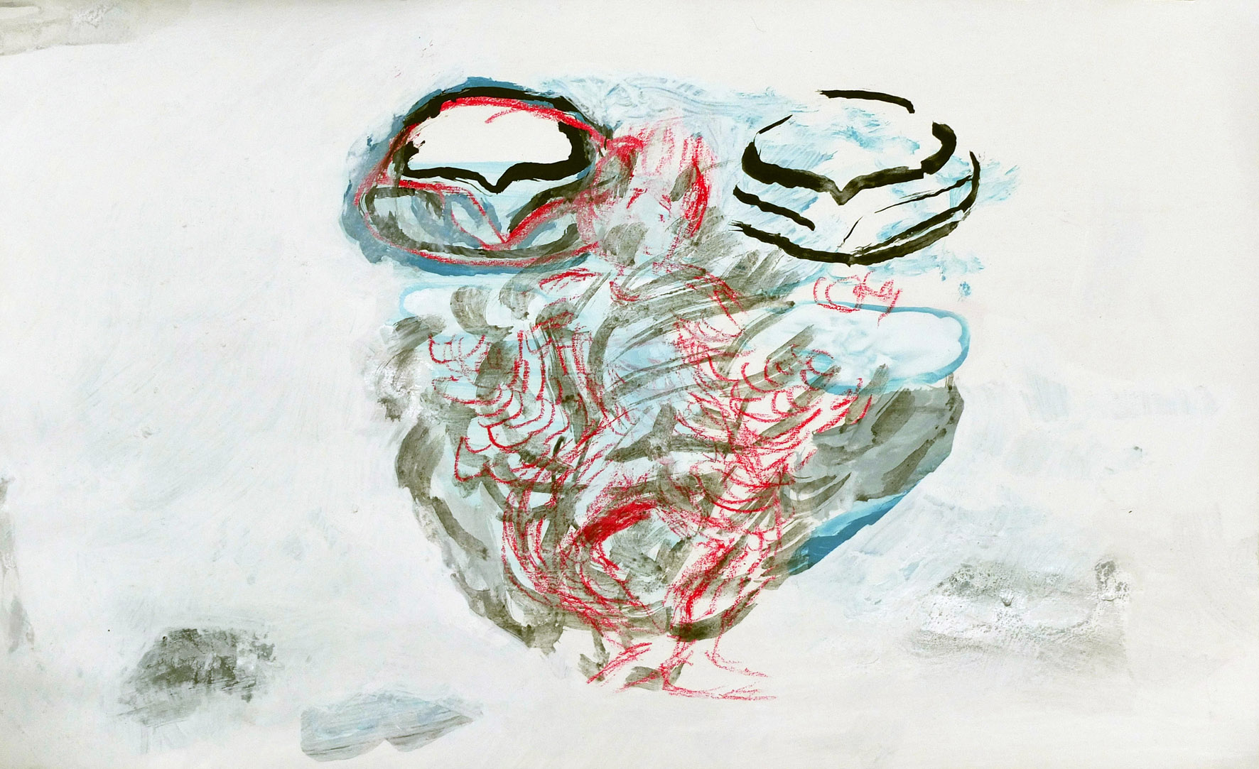 Titel: Rote Erscheinung Jahr: 2008 Kategorien: Arbeiten auf Papier Technik: Gouache und Kreide auf Papier Größe: 26 x 41 cm