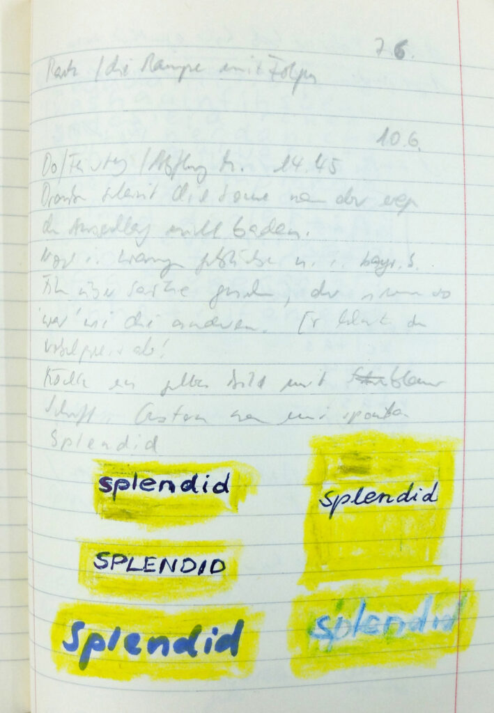 Titel: Seite aus dem Arbeitstagebuch 2004 Jahr: 2004 Kategorien: Arbeiten auf Papier Technik: Bleistift und Marker auf Papier Größe: 20 x 16 cm