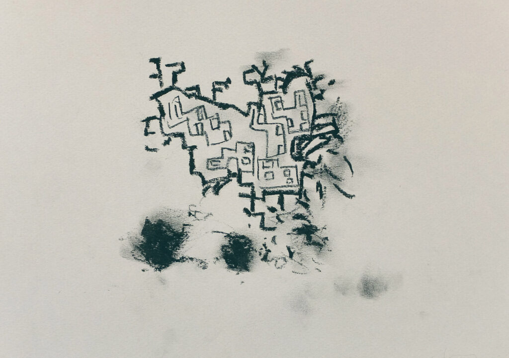 Titel: Tanz Jahr: 2007 Kategorien: Arbeiten auf Papier Technik: Marker auf Papier Größe: 21 x 29 cm Untertitel: step by step II Untertitel: step by step III