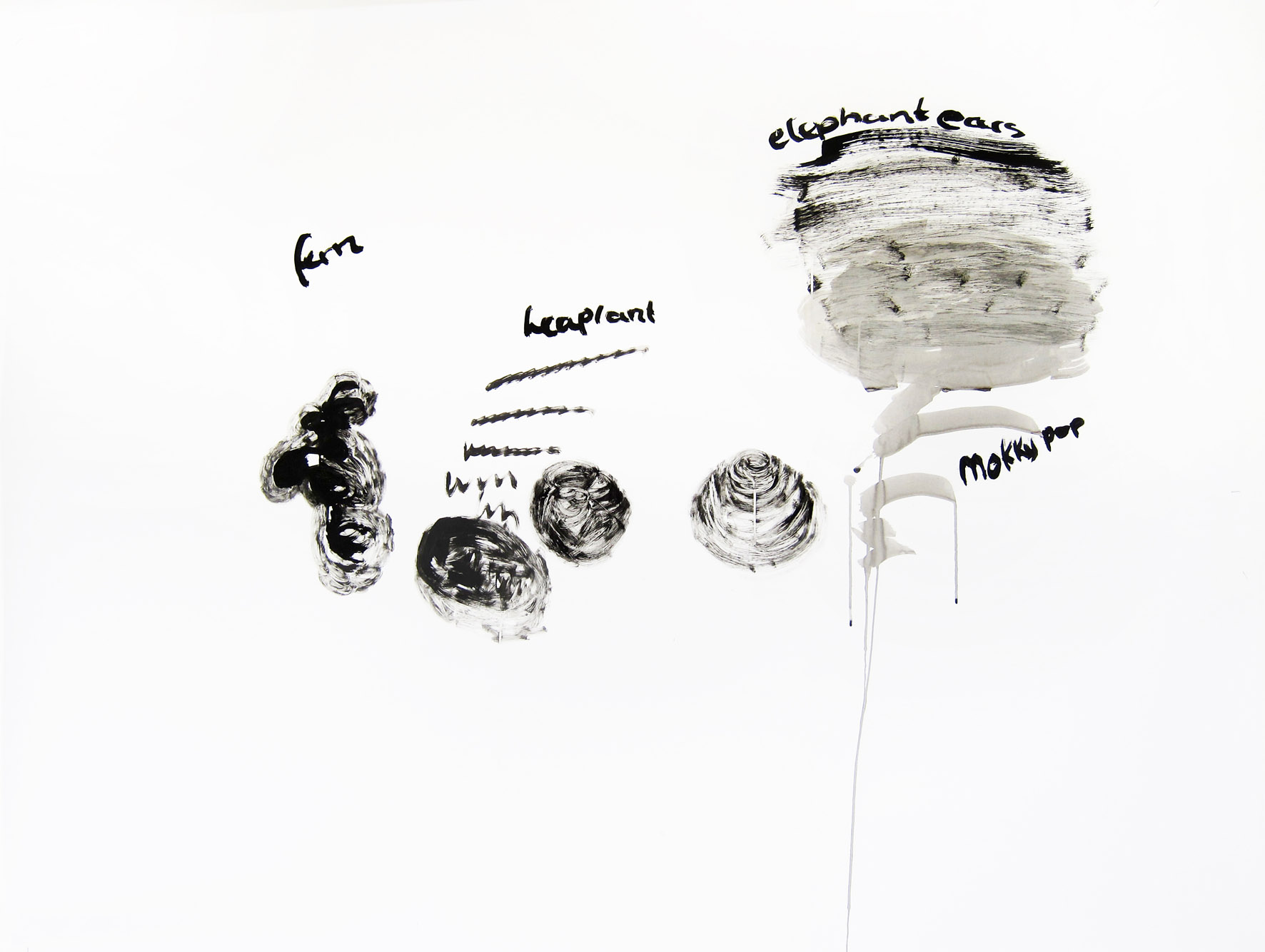 Titel: Woodoo 4 Jahr: 2010 Kategorien: Arbeiten auf Papier Technik: Tusche auf Papier Größe: 70 x 130 cm